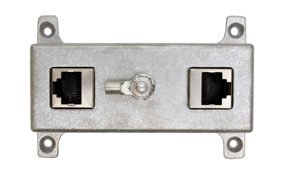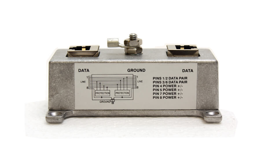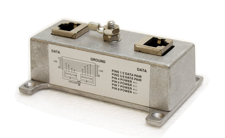 Lightning arrestor for RJ45 terminated cables.